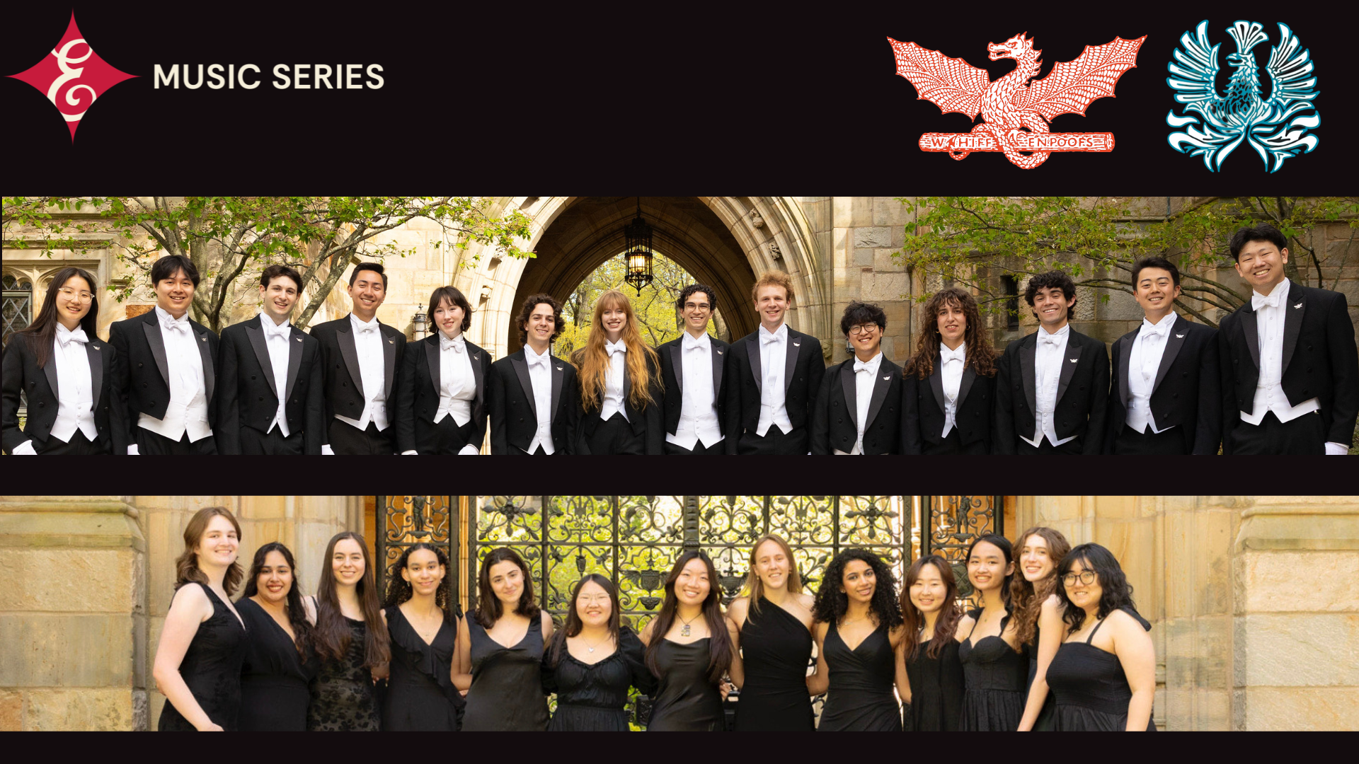 Joining them is Whim n’ Rhythm, Yale’s all-senior soprano-alto ensemble, founded in 1981. These accomplished vocalists have performed across six continents — from the White House to international embassies — sharing their artistry and championing gender equity in music and education.