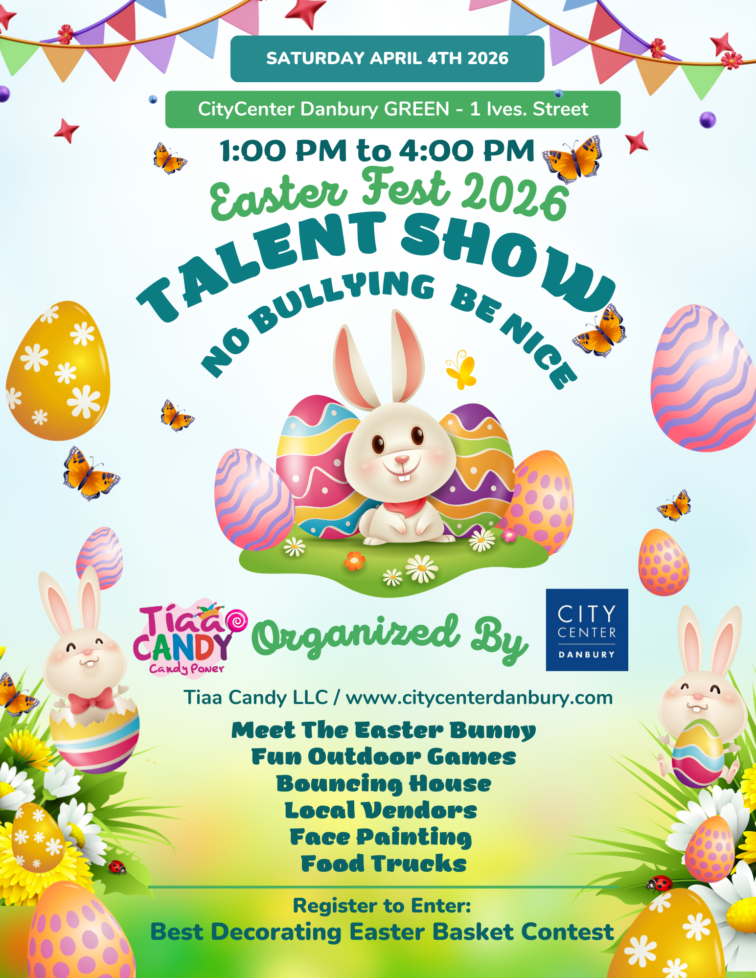 “We’re thrilled to host our 4th Annual Easter Festival on the Green,” said Lazaro Chavez, Executive Director of CityCenter Danbury. “It’s always wonderful to see families come together to celebrate the spirit of Easter and enjoy a day filled with joy, laughter, and community connection. We’re especially excited to introduce the new Easter Basket Decoration Contest this year and see the creativity from our community.”