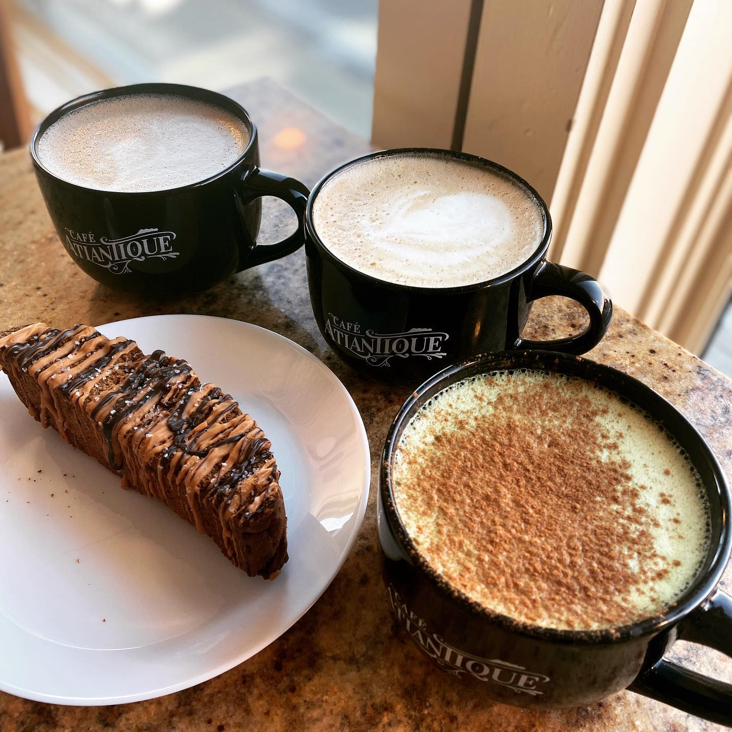 For over 16 years Cafe Atlantique has been serving up an international flair to downtown Milford. Espresso and Crepes in the morning, Wine and Crepes at night. C'est la tasty, n'est pas? In 2020 new ownership is here to respect that legacy of the good coffee and a homey atmosphere, with our own little taste of fun and innovation. Don't worry, that good coffee part is here to stay. Our motto? A little fancy, a lot of delicious.