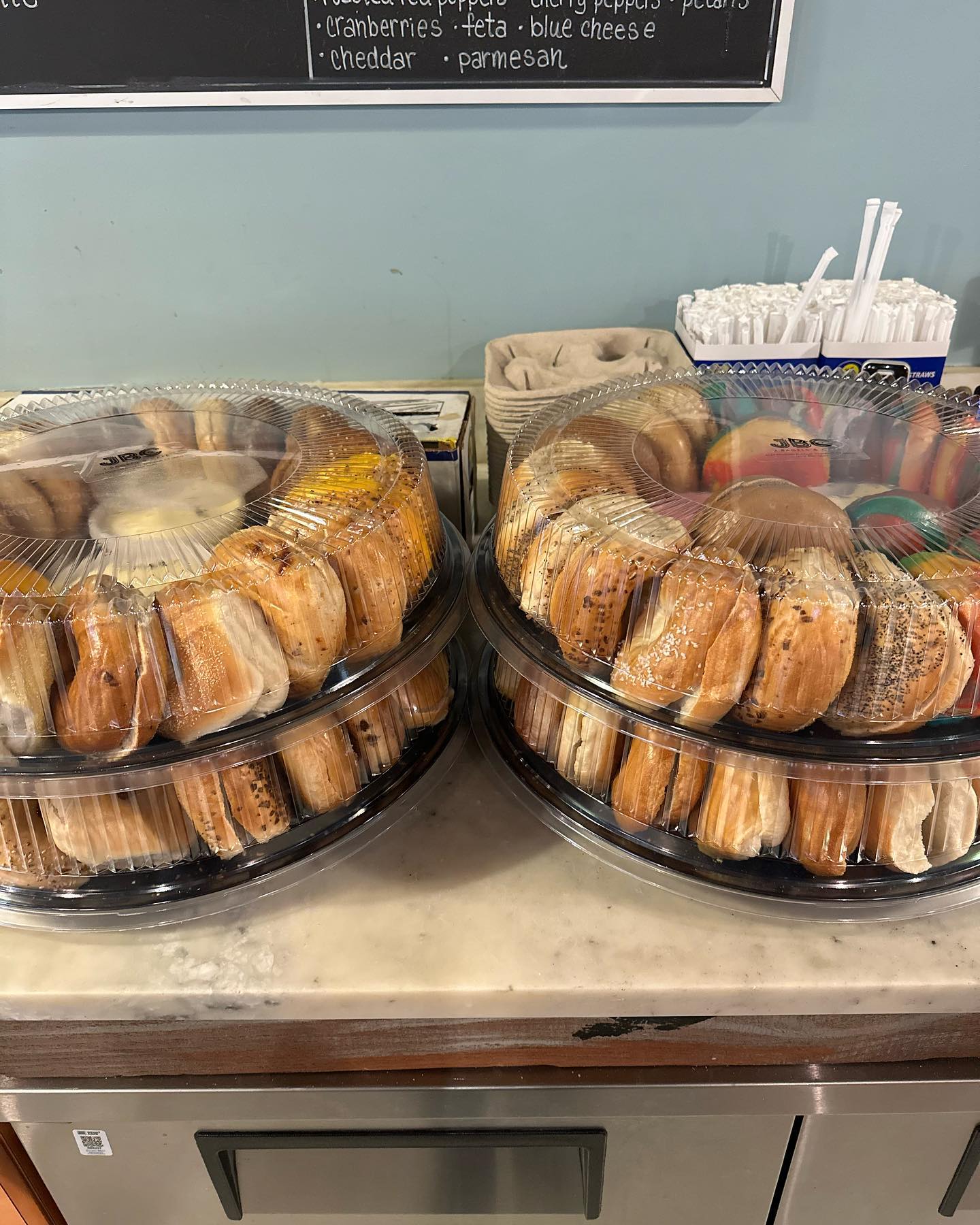 Formally known as UCBC Trumbull, J Bagels & Cafe is a family run bagel shop. Owner/Manager, Jen, decided to give the corporate world a break and enlisted the help of her father in running a bagel shop. Little did he know what he was getting into! You can find her and her brother, Jay, working the counter on any given day or whipping up some bacon, egg and cheeses on the grill during the busy weekends. We make our bagels from scratch using only the highest quality ingredients. You can say that we keep it "old school" as our bagels are rolled, kettle boiled and then baked in house. We top our fresh baked bagels with over a eight different flavors of cream cheese spreads. Stop by and stay a while - our space is warm, inviting and we offer free Wi-Fi for those that need to get some work done.